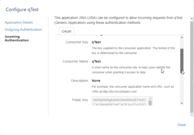 qTest provides a default private key, but you also have the option to upload your own private key. You will upload your private key in the Security tab of Site Administration before connecting with Jira OAuth.