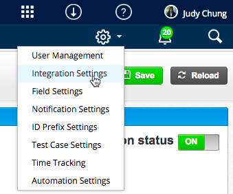 Within your qTest project, select the Integration Settings option from the Project Settings list.