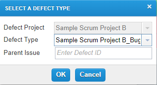 Recall during setup that on the Jira Integration Configuration page, you selected a Jira project and Jira issue type. When you want to create a defect, the system asks you what Jira project and Issue type you want to select. -
