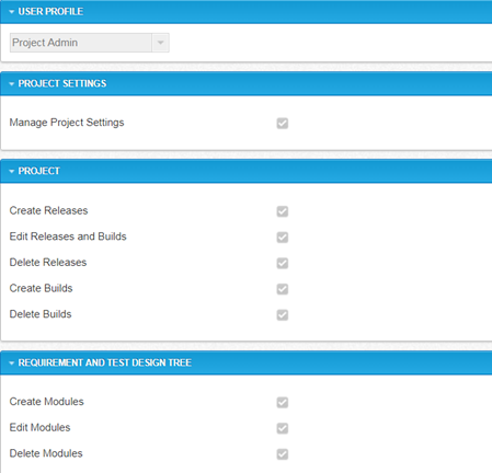 Each user profile contains a predefined set of permissions (such as, create a test case, approve a test case, etc.) and any user assigned that user profile receives those permissions. For example, inside a given project, the user might be assigned a Business Analyst user profile or a Project Admin user profile with a set of permissions associated with either role. A user profile can be assigned to different users, and is an easy way to standardize permissions for multiple users. For more details, check out this article: User Profiles.