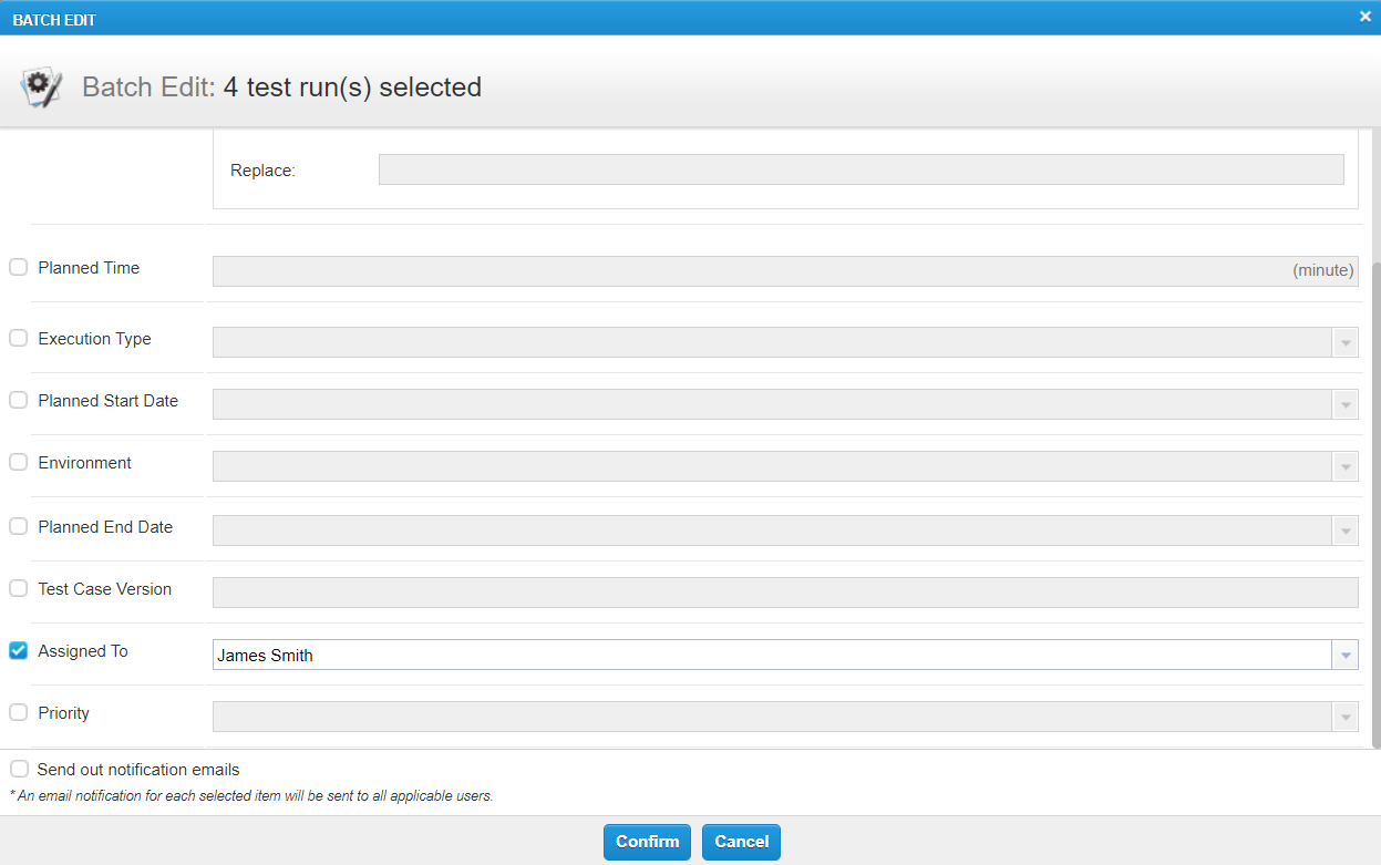 Click Confirm to assign the Test Runs to the selected user.