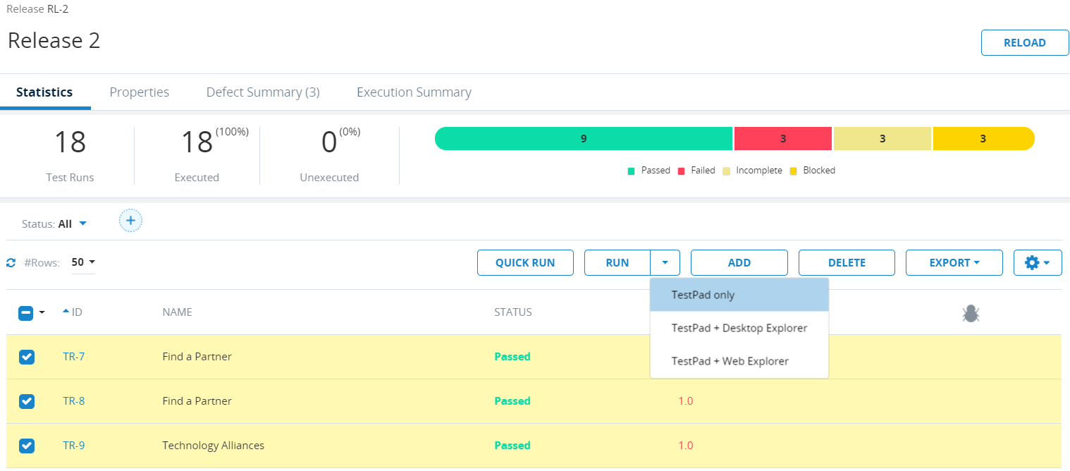 TestPad + Desktop Explorer. Execute the selected Test Runs using the TestPad and Desktop Explorer.
