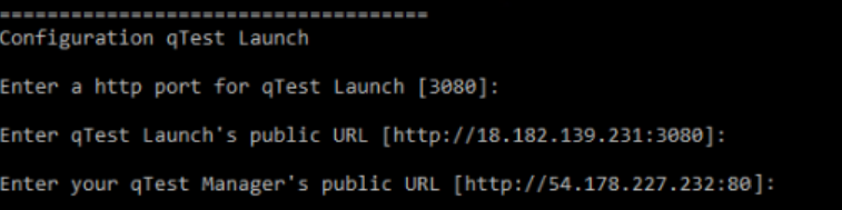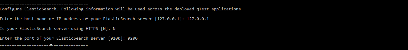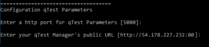 6. The Command Line Wizard will prompt you for each installation instruction. You may need to perform action items and gather specific connection information before you begin the installation process. Enter the same configuration items from the previous version qtest.config file unless there are changes to the previous configuration that requires new information.