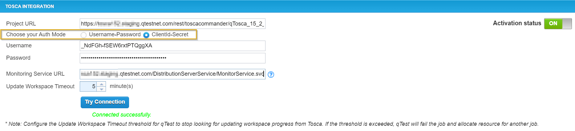 We've added client ID-secret authentication to ensure compatibility with Tosca 15.2, so qTest users can now authenticate HTTPS with client Id-secret when required. Effective with Tosca 15.2, if you are using an HTTPS connection or a server repository workspace, you must set up client ID-secret authentication.