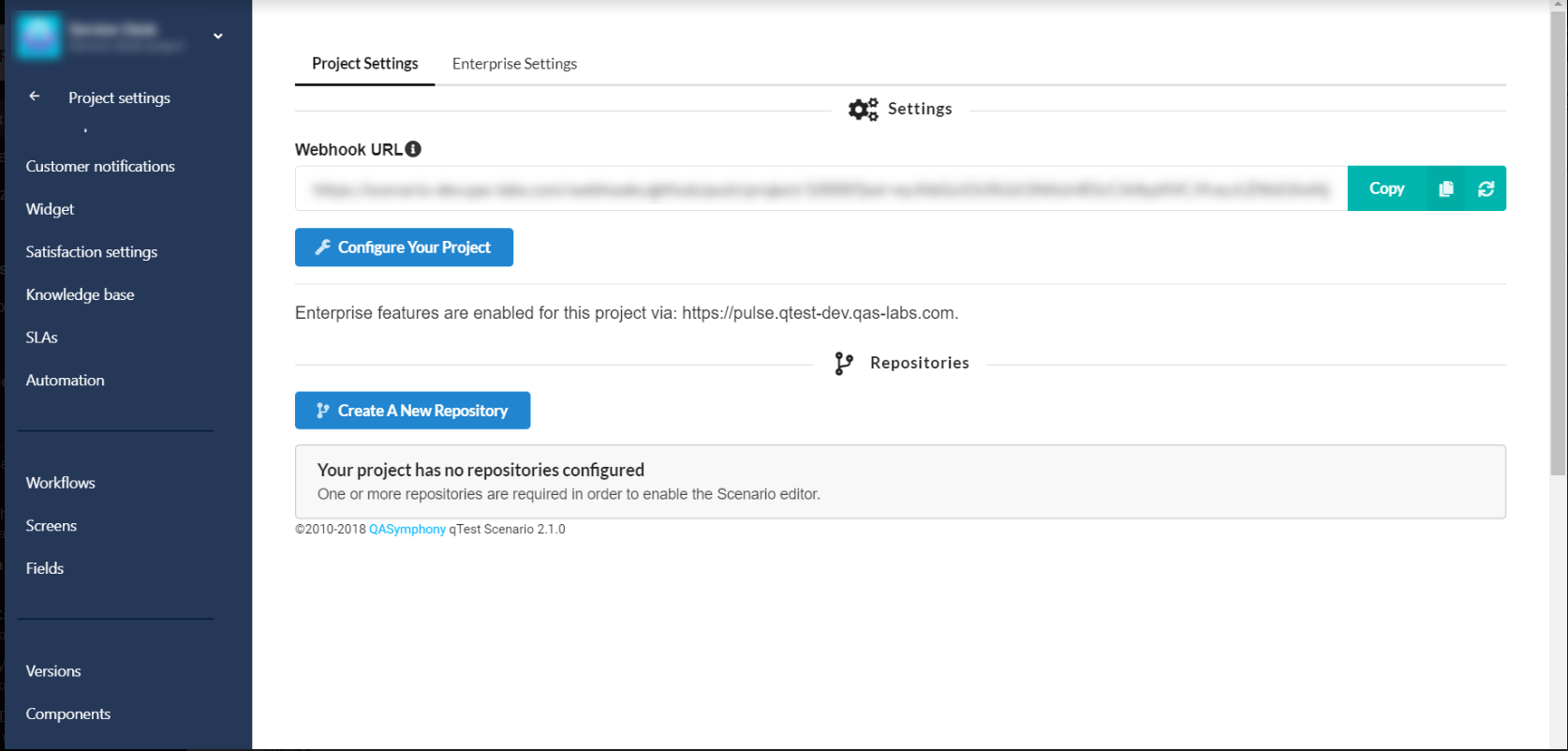 Your Enterprise Features are now enabled for qTest Scenario, and you will have an Enterprise Settings tab within your Scenario plug-in.