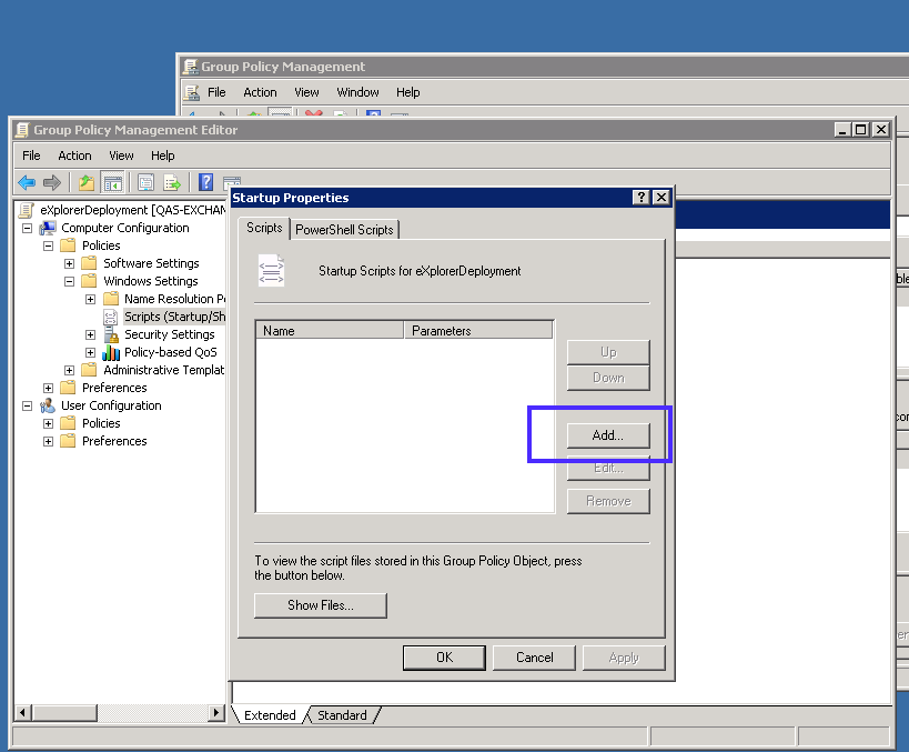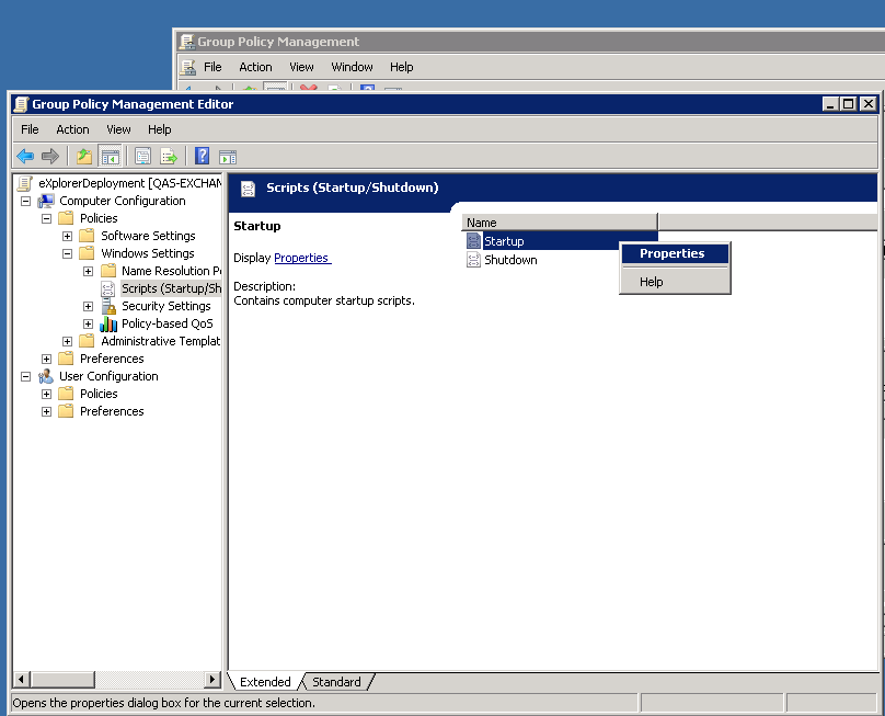 From the Group Policy Management Editor, browse to Computer Configuration > Policies > Windows Settings. Then select Scripts (Startup/Shutdown).