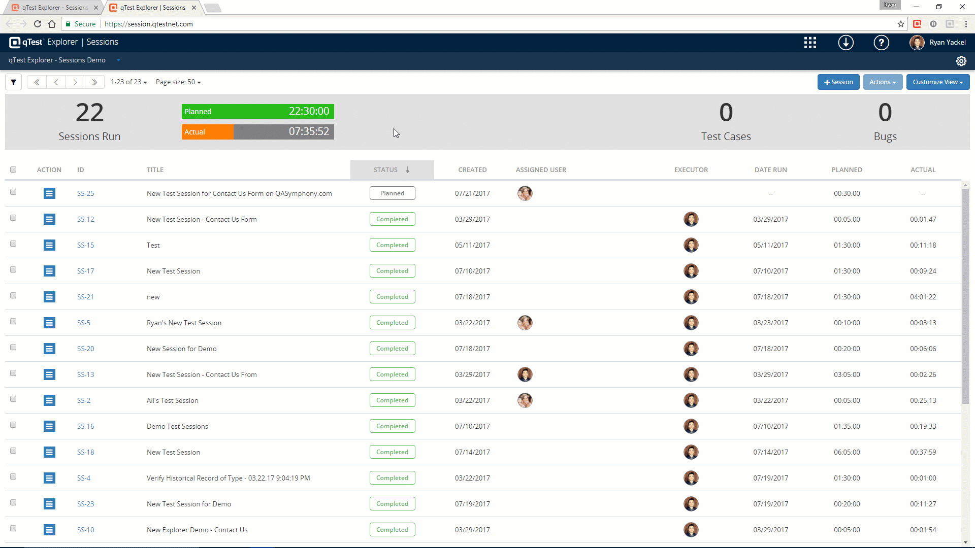 After you have created and planned your test sessions, you can run through from the Session Module, or pick from a planned session depending on if you are using Desktop or Web Explorer.