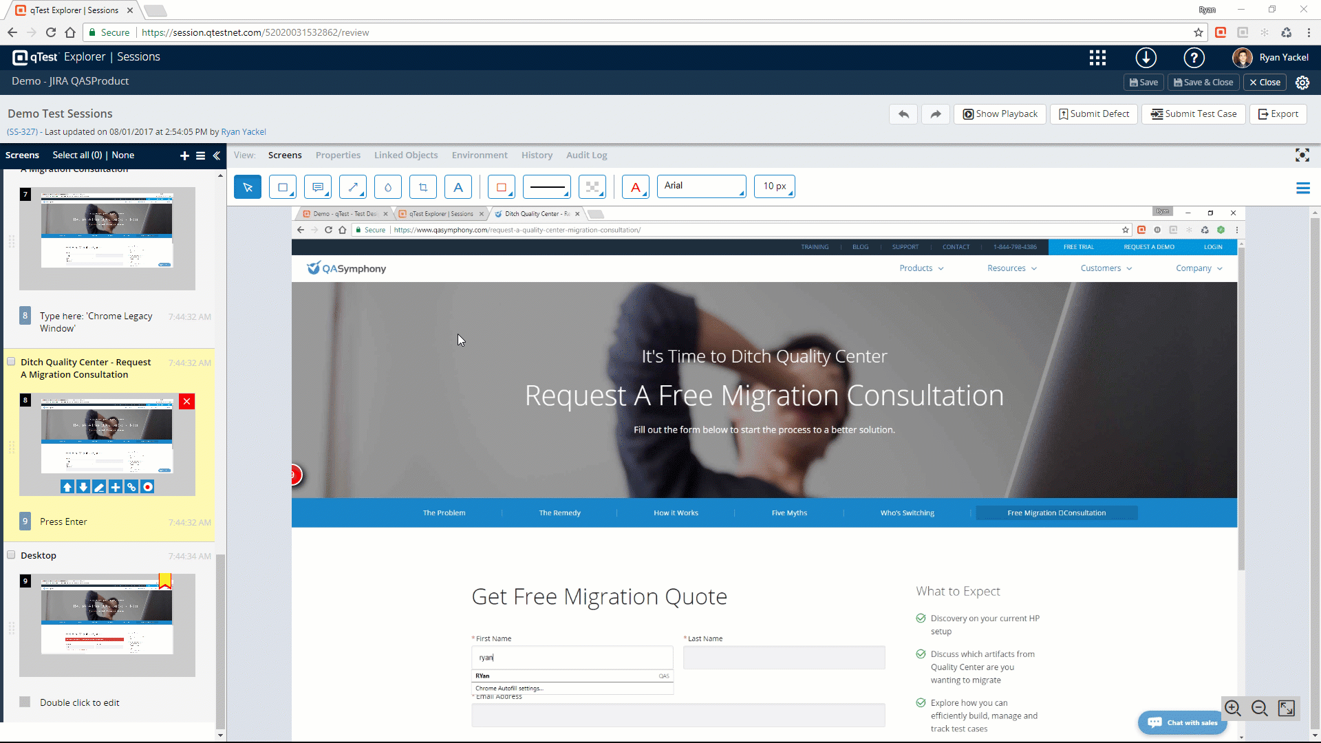 In Session Editor, to submit defect to, or update an existing defect from, your configured defect tracker, click the Submit Defect button.