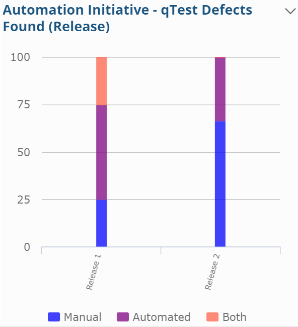 | qTest | Automation Initiative - Linked Defects Found (Release) | A stacked bar graph that shows the amount of found linked Defects that are either manual, automated, or both. This data is tracked by Release. |
