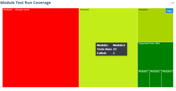 | qTest | Module Test Run Coverage | A chart that displays the amount of Defects per module within a given project |
