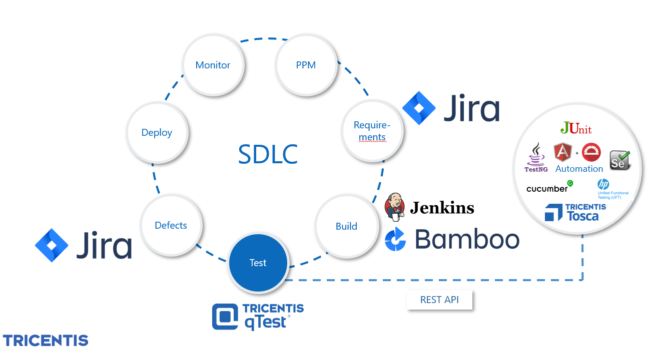 Traceability is a fundamental component of what qTest provides your Agile environment. By centralizing all of your Test Cases (including manual, BDD, various automated, and even exploratory) within qTest Manager, you are able to provide uniform traceability and coverage across your Requirements. qTest is the central repository of all test assets, regardless of how or where they are executed. This can be seen at a high level in the below diagram.