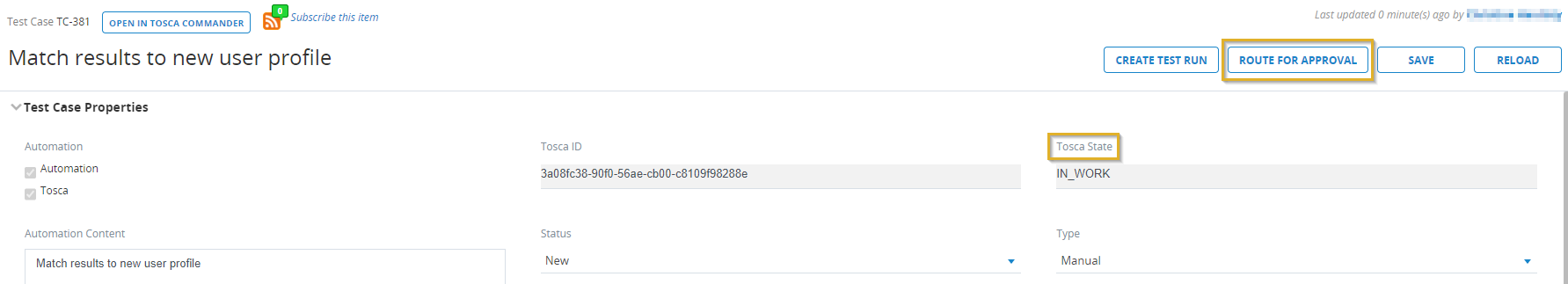 Note that you can only see the Route for Approval button after you request approval for the test case from Tosca.