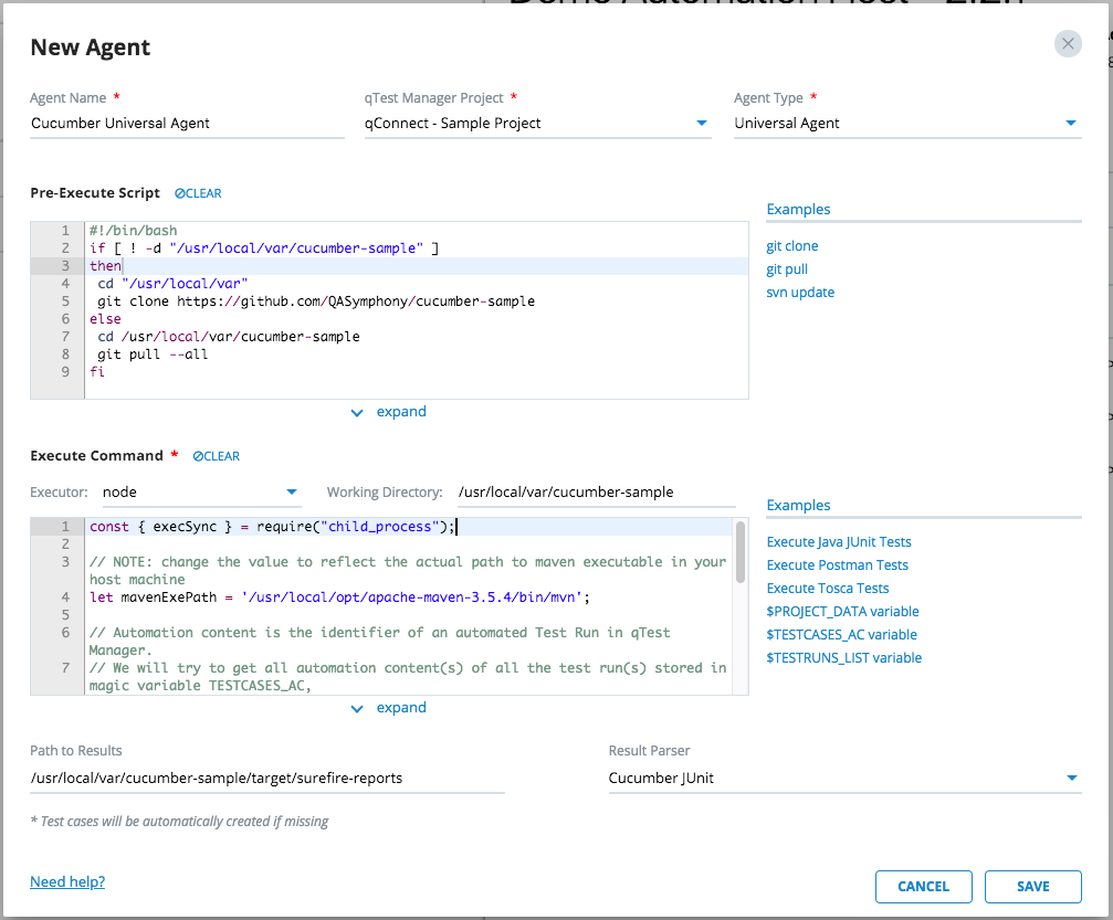 In this article, you will learn how to integrate Cucumber with the Universal Agent.
