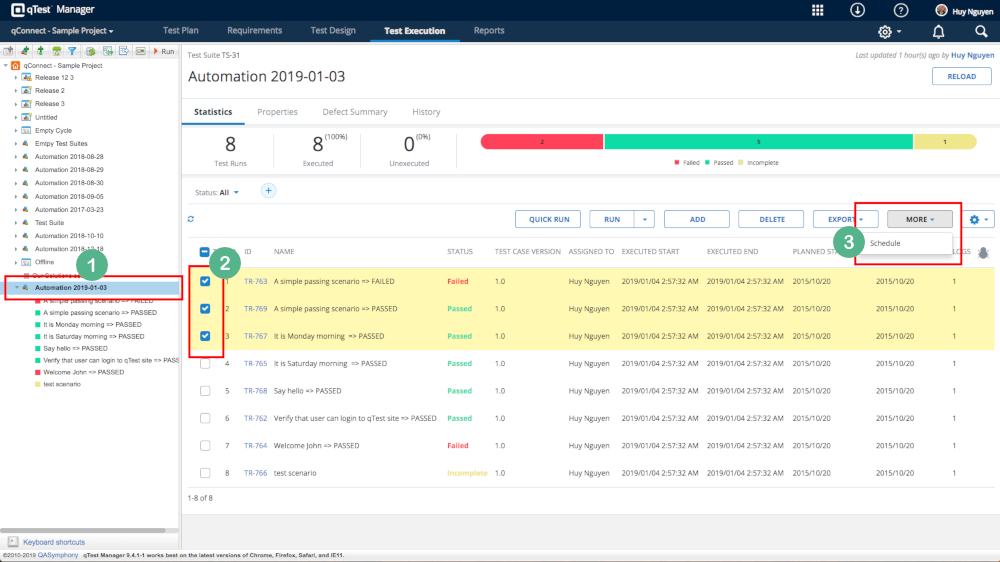 Select the newly created test suite. In our example, it is Automation 2019-01-03.