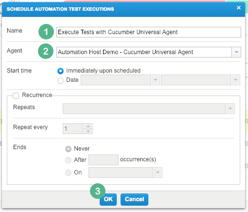 Now we are going to schedule Test Execution for some specific test runs with the Cucumber agent and verify it only executes tests that match the scheduled test runs.