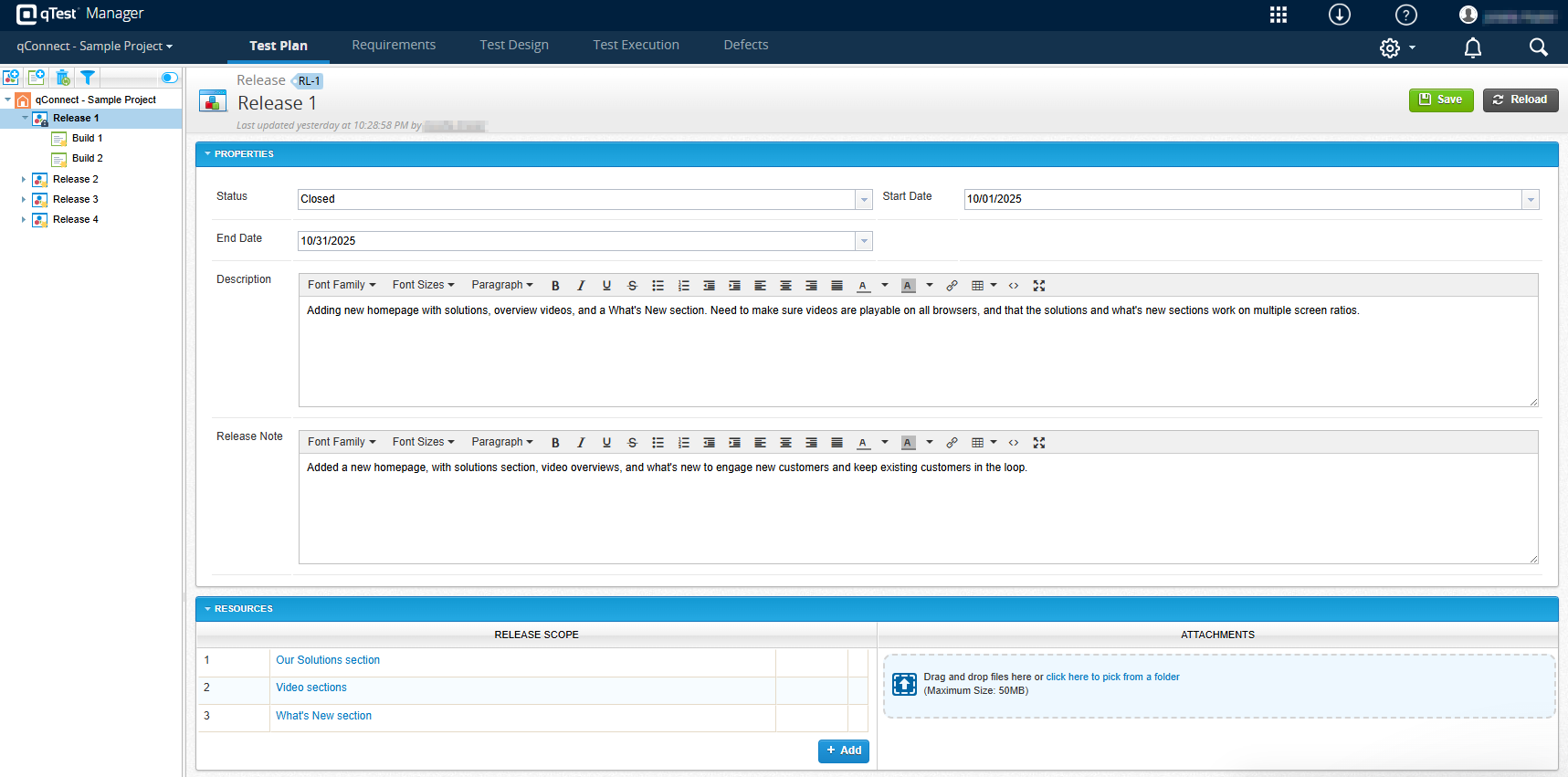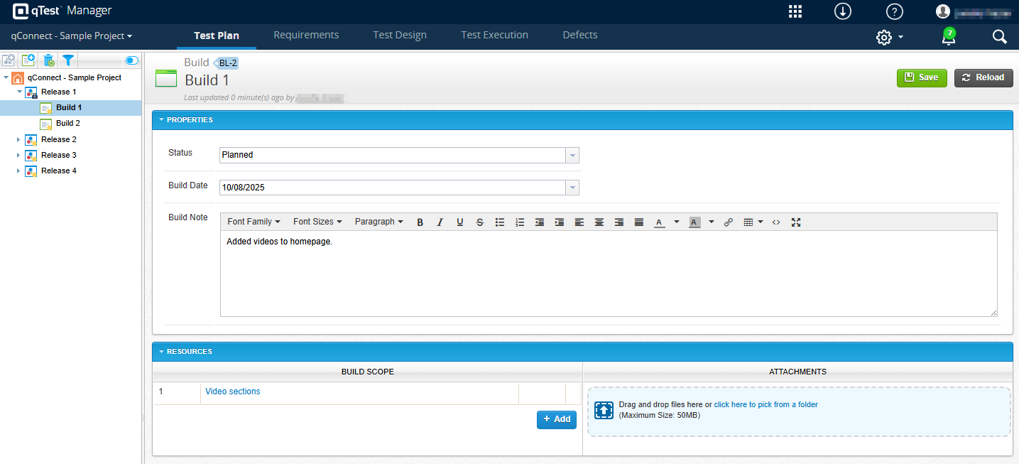 The test plan is comprised of releases and builds, which define your deadlines and testing goals. While release and build are the qTest terms, these objects can be used for other time periods, such as sprints for Agile projects or different phases of testing for Waterfall projects.