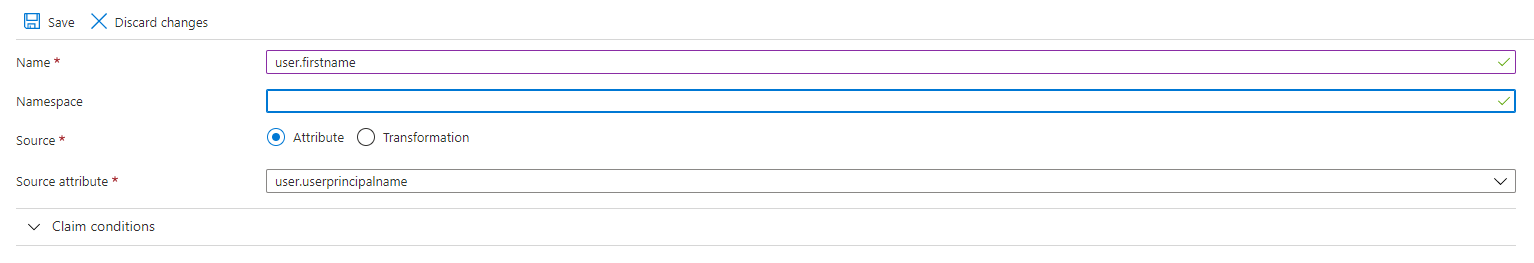Repeat this step for each attribute, including the user's email address, first name, and last name.