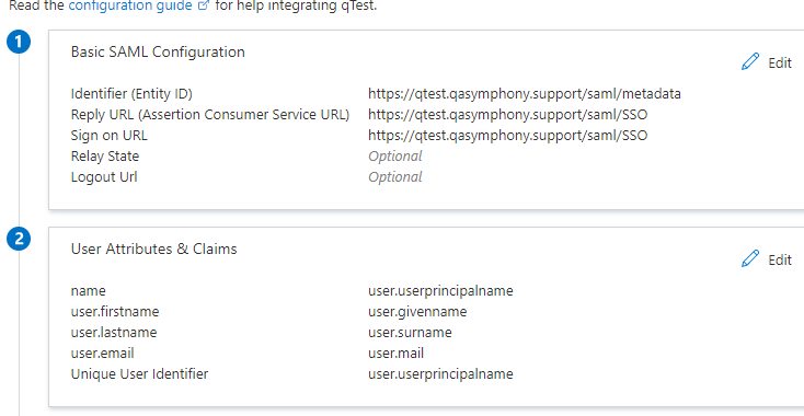 The qTest SSO URLs and attributes are used when configuring your IdP in the Configure your IdP with Azure Active Directory and Configure your SSO Integration in qTest sections.