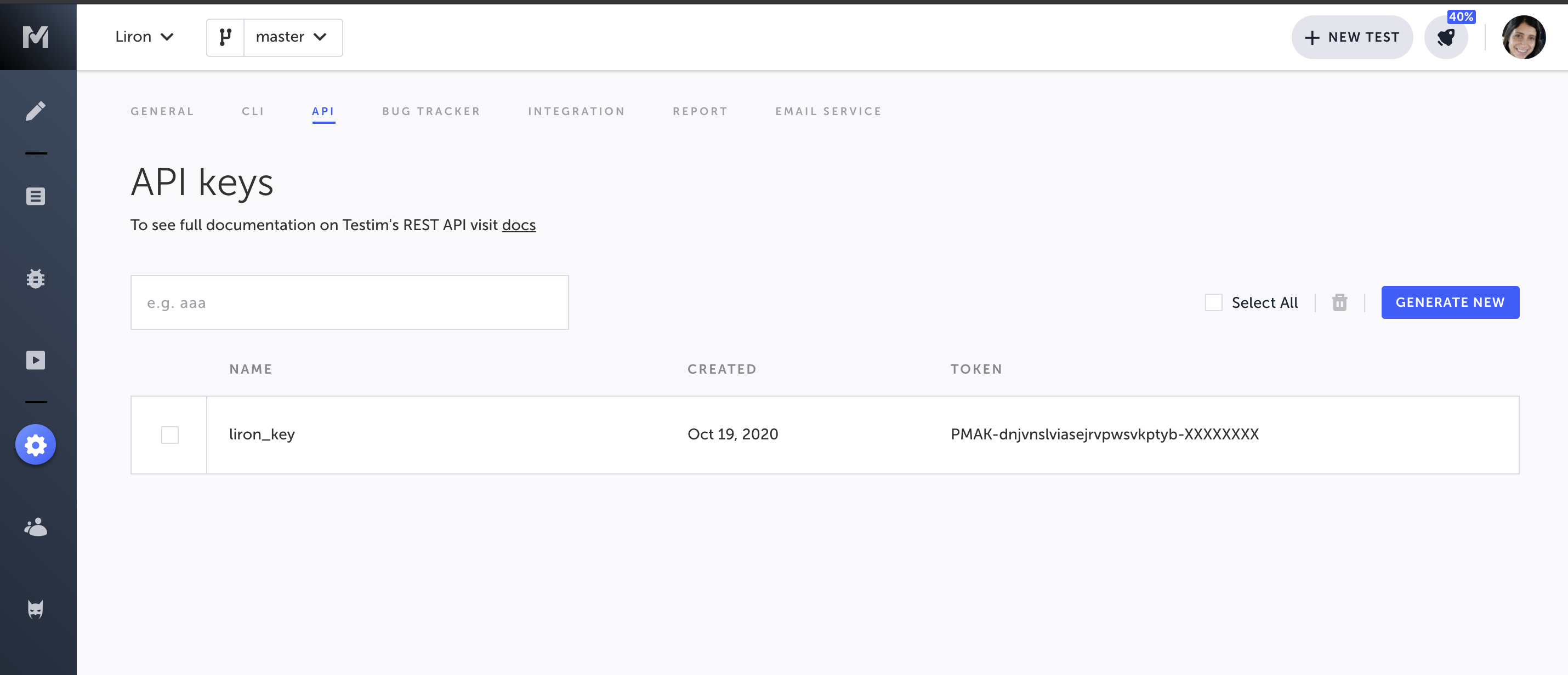Click Generate New and follow the instructions in the above Enabling API access section.