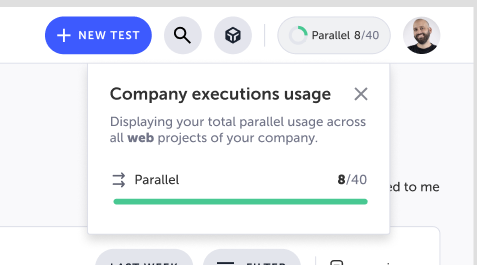 The element includes a doughnut chart indicating the parallelization usage level and the number indicating the current usage out of the total in your plan. Click the element to view more details.