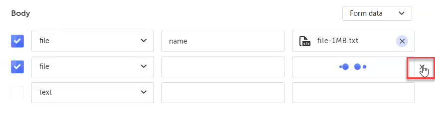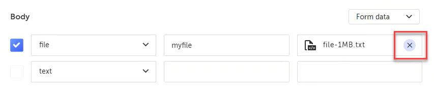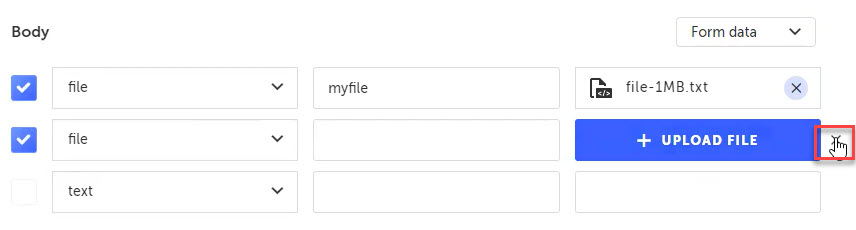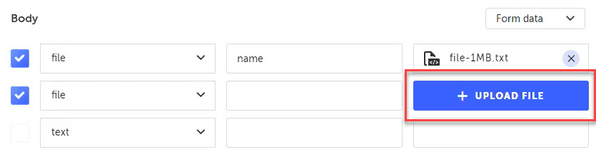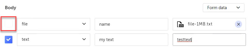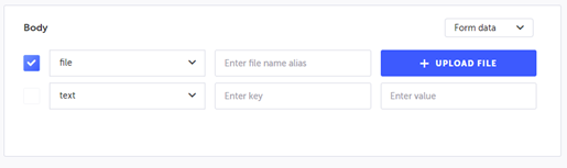 Note: If you do not provide the Key name or file attachment for the file entry, the API call will exclude this entry when running the test.