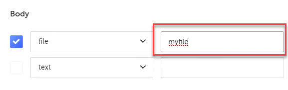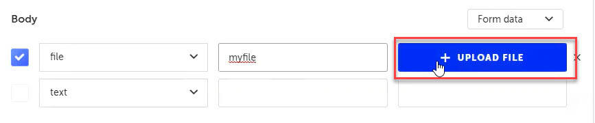 Note: Sending a file as part of an API call only works with the Post HTTP Request method.