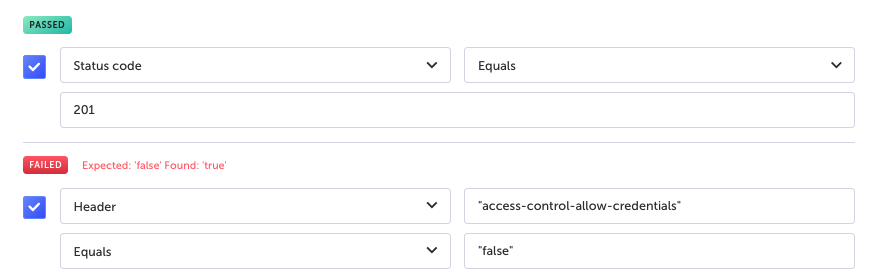Repeat the steps above to add additional assertions. To enable/disable the assertion select/deselect the checkbox.