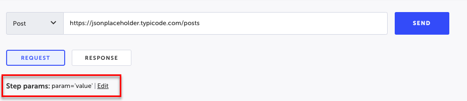 The available step parameters are listed below the URL field. You can click Edit to modify the parameter in the Properties panel.