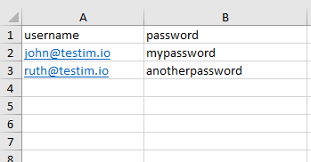 It is also possible to upload the test data using a CSV or Excel file. After the file is uploaded its data will be added as the test data according to the following structure: