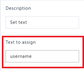 In the Properties panel, in the Text to assign field, replace the current static value to the parameter's name (e.g. username).