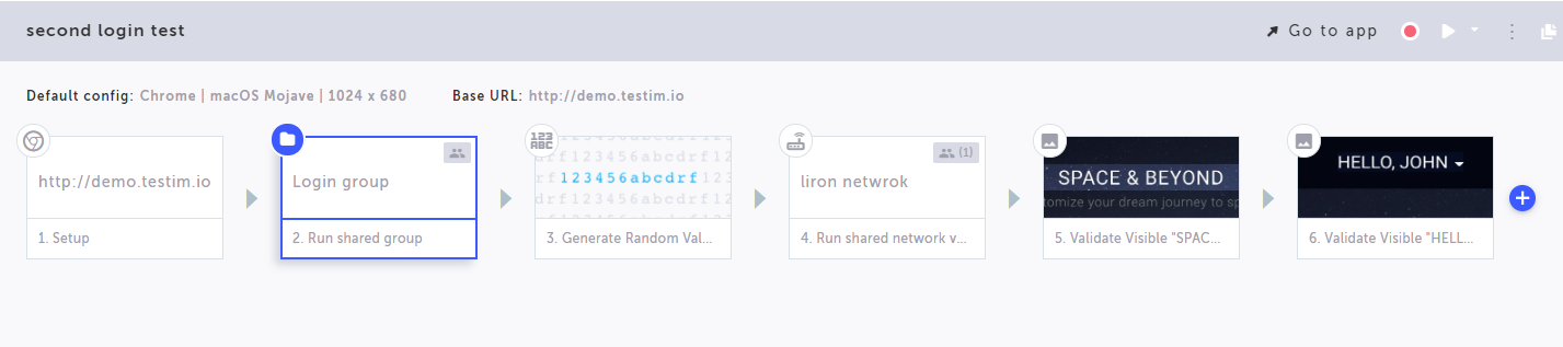 We have created a login group with parameters, that can be easily reused in other tests with a different set of values without the need to change the group itself.