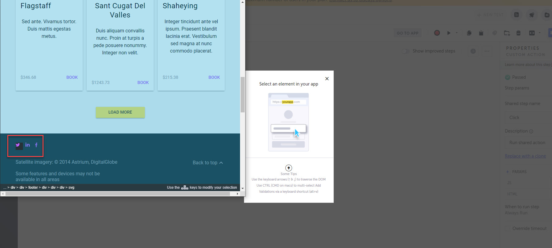 In the AUT, select an element for which you want to assign the parameter. For example, the Twitter icon at the bottom of the page.