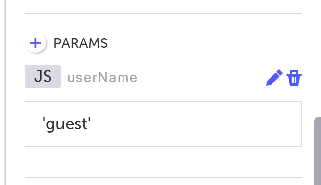 Most step types include the ability to define a parameter in PARAMS field, located in the Properties panel. There are 2 types of parameters: