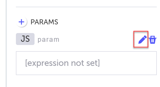 In the Properties Panel, click the + button next to Params and then click JS.