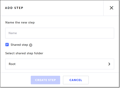 If this is a shared step to be made available to reuse in this or other tests, keep the box next to Shared step selected (default), and choose a folder from the Select shared step folder list where you want this step stored. Otherwise, deselect the checkbox.