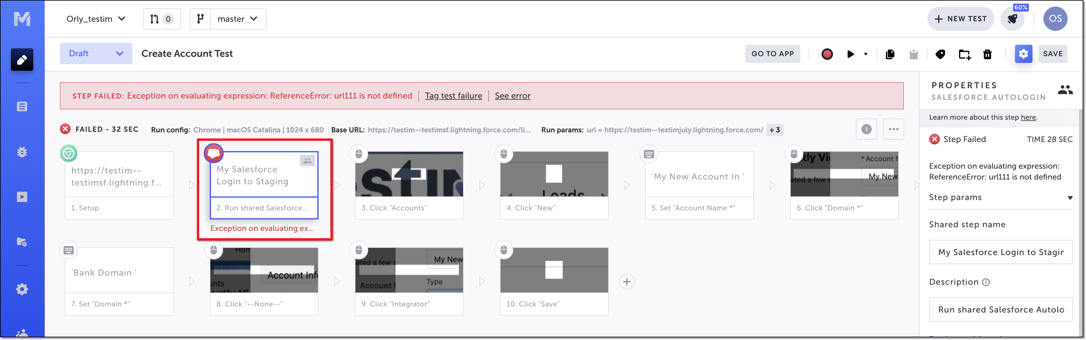 After you run your test, a step log is available in the code editor with your test results from Salesforce.