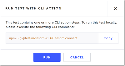 Before running your test, ensure that Testim’s CLI agent is running by executing the following command: npm i -g @testim/testim-cli && testim connect.