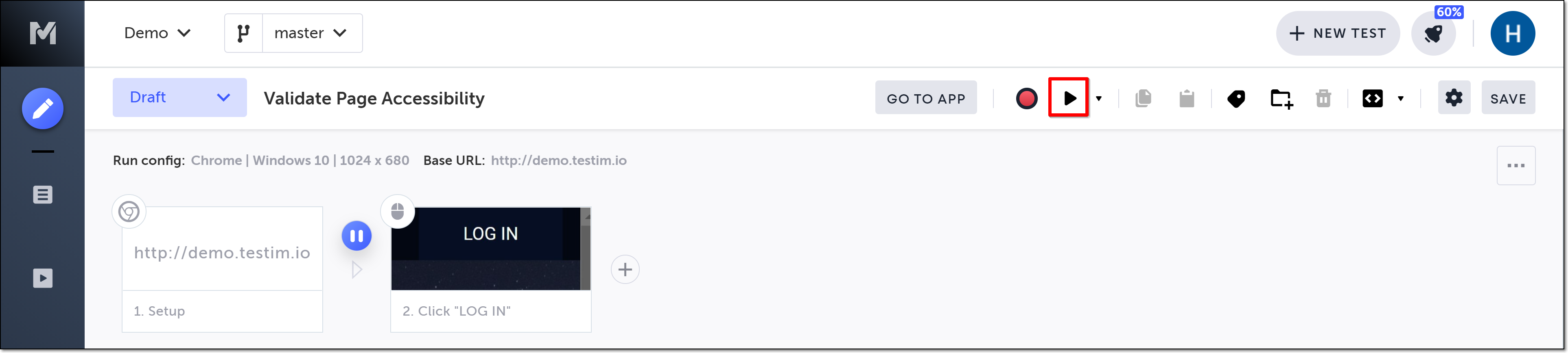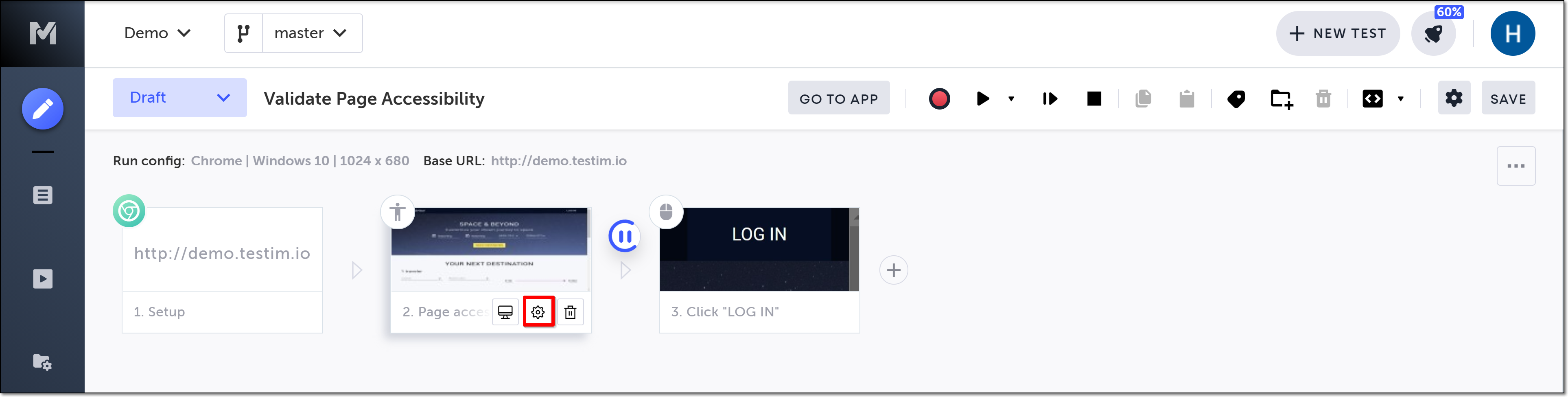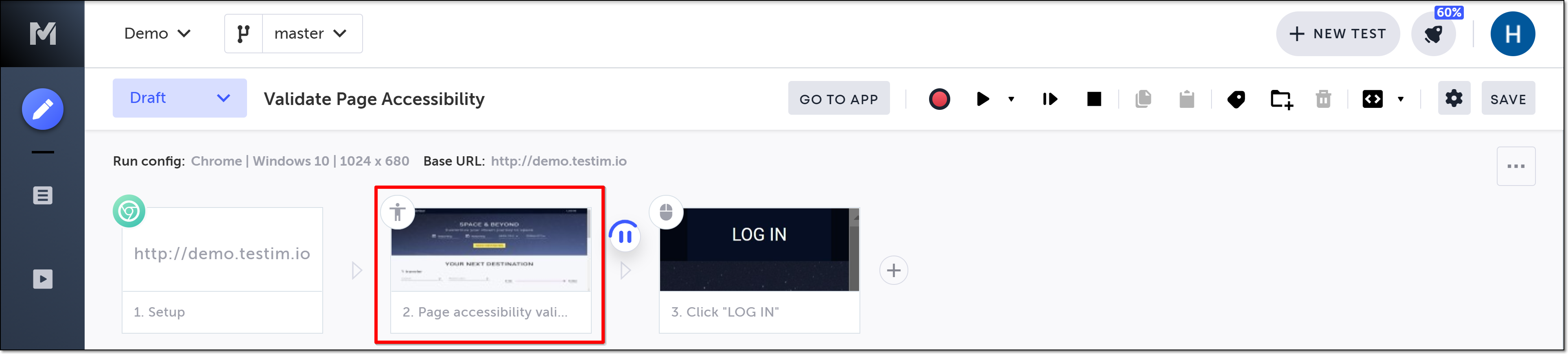 A Validate page accessibility step is added in the Editor.