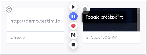 Hover over the :fa-caret-right: (arrow symbol) again and click on the “M” (Testim predefined steps).