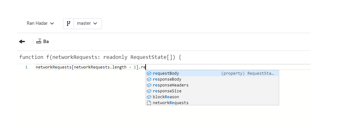 the requests that were made. Each request object has the following properties: method, statusCode, resposeHeaders, requestBody (this is the new property), responseBody (this is the new property), headers, and more. When adding the Add network validation step, it is possible to add the requestBody and/or responseBody properties, as shown below.