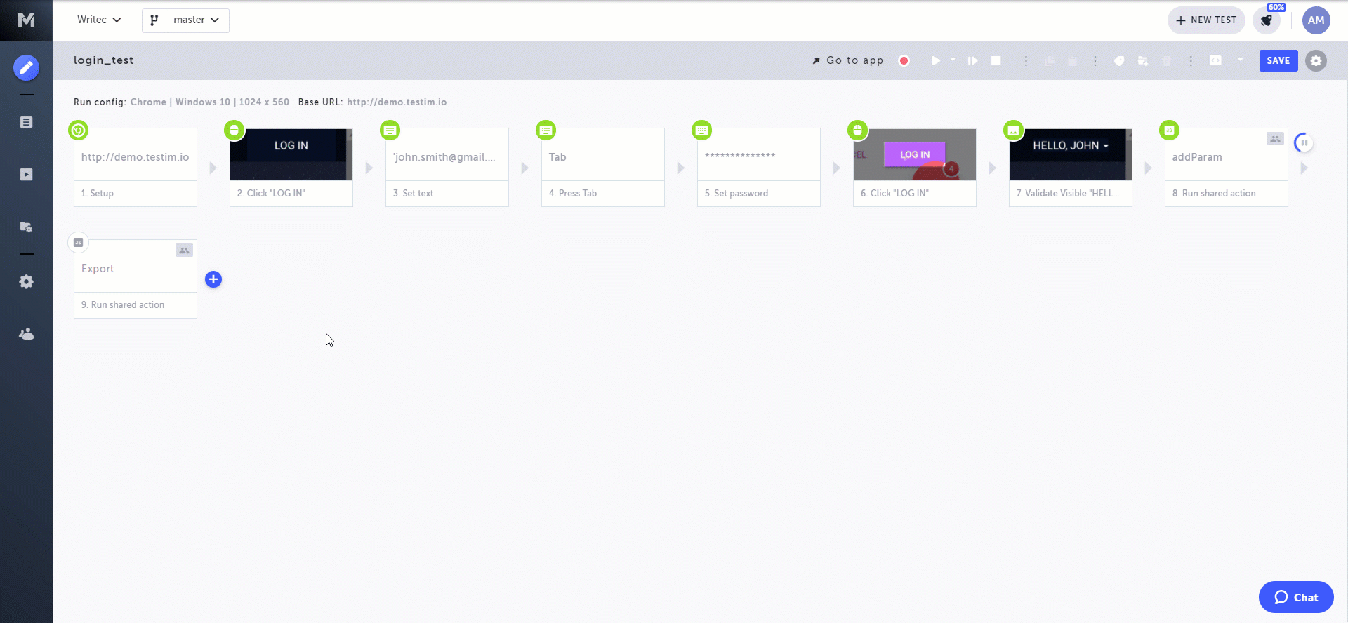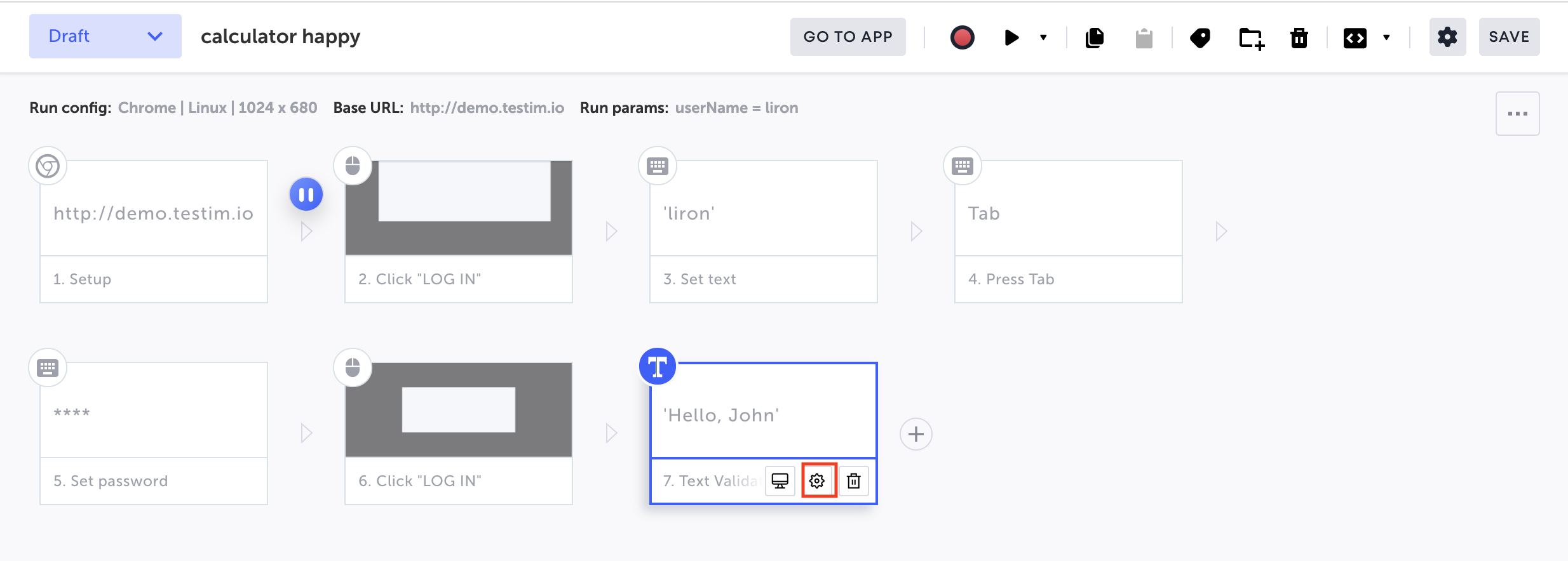 Hover over the position again and click on the "M" (Testim predefined steps).