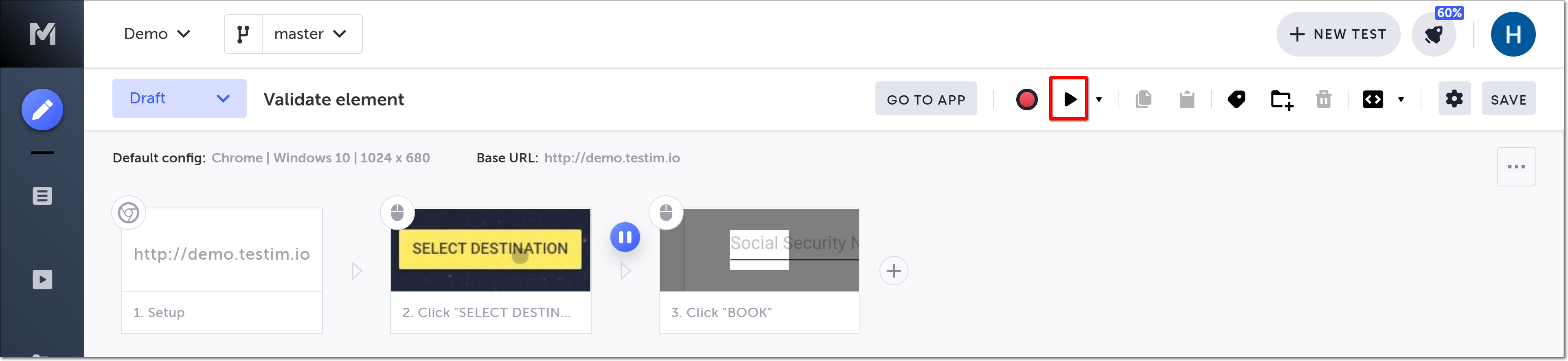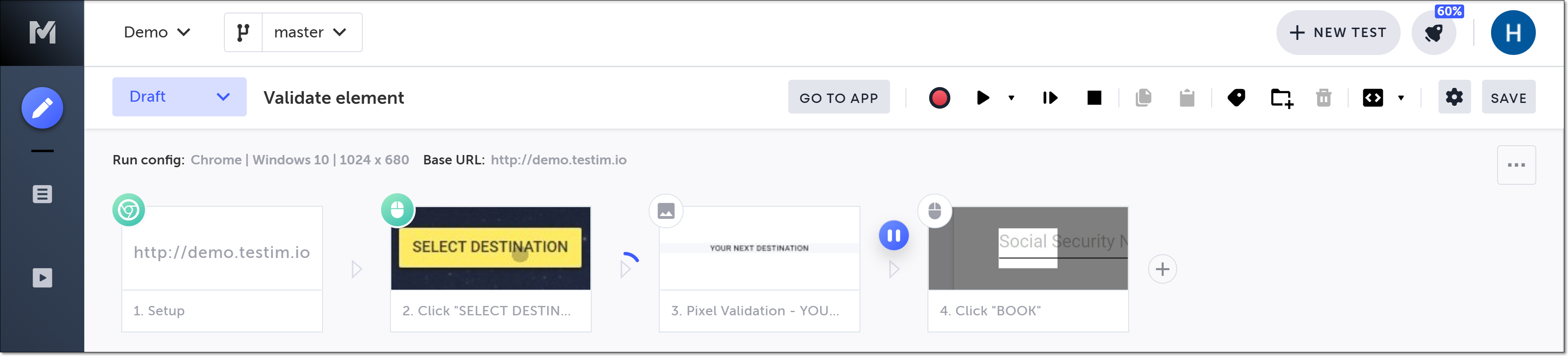 Testim automatically creates a baseline in the first step run. It is recommended that in the Applitools UI you review, customize, and confirm that this baseline meets your expectations.