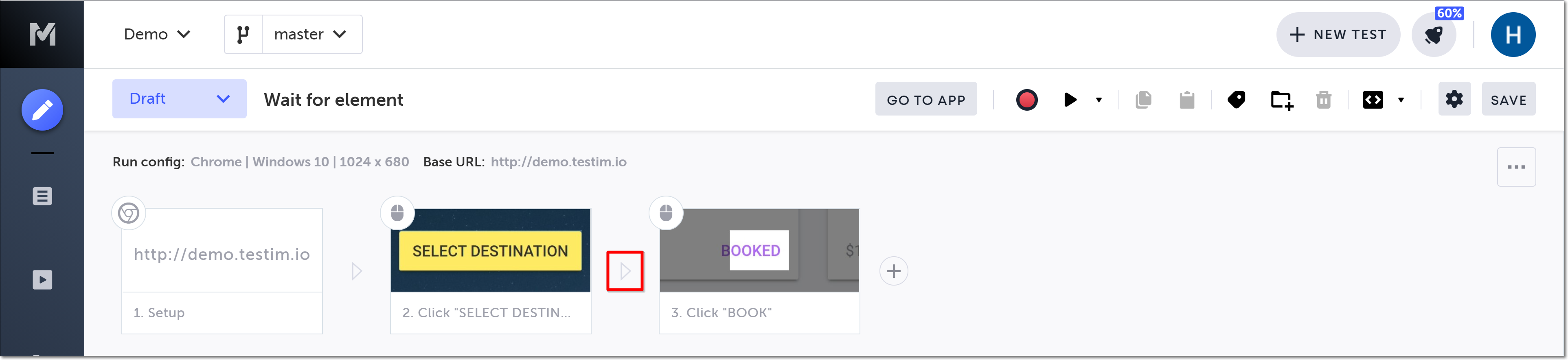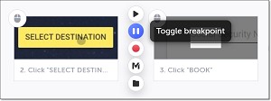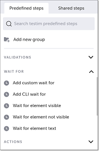Hover over the :fa-caret-right: (arrow symbol) again and click on the “M” (Testim predefined steps).