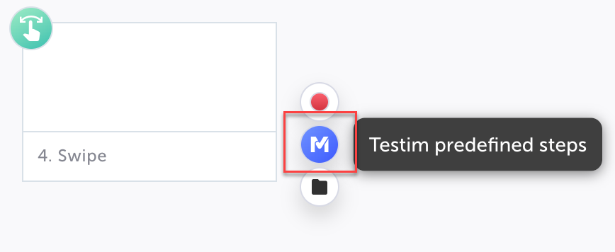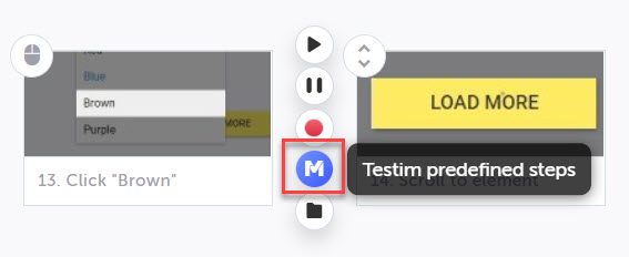 Hover over the arrow where you want to insert the new step and click Testim predefined steps.