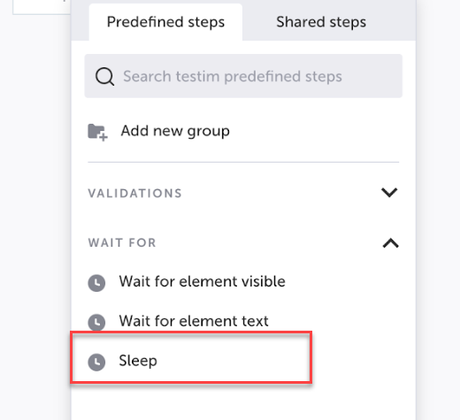 Sometimes you want to wait a few seconds between the steps. Use it carefully as constant waiting will make the test run longer. → To add a Sleep step: