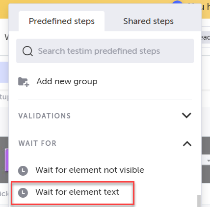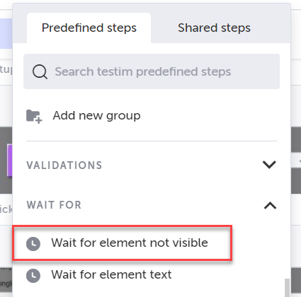 There might be instances where you want to wait for a certain event to occur before taking the next step. It can be a wait to display an element, wait for text display, simply wait for 2 seconds, or for any other reason for which the wait is required. Testim has a built-in capability to help you wait... Types of waits we provide: