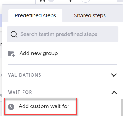 Note: Wait for step will retry until the function returns a true value or until the timeout for the step is reached. Custom Wait for steps are reusable components. You can use them on other tests. * You can use step parameters, export parameters, and so on in your Custom wait for step. See Add custom validations and actions for more information about custom actions.