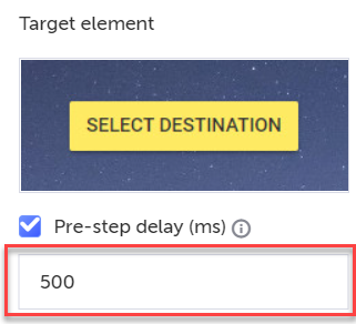 Set delay time in milliseconds (ms). Testim will wait this amount of time before moving to the next step.