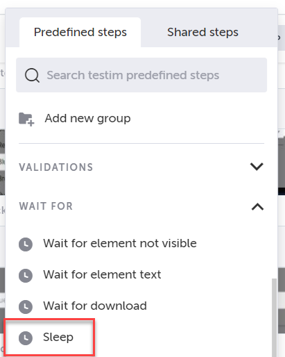Add a Wait for Download step if you want Testim to pause to ensure a file is completely downloaded before moving on to the next step. → To add a Wait for Download step:
