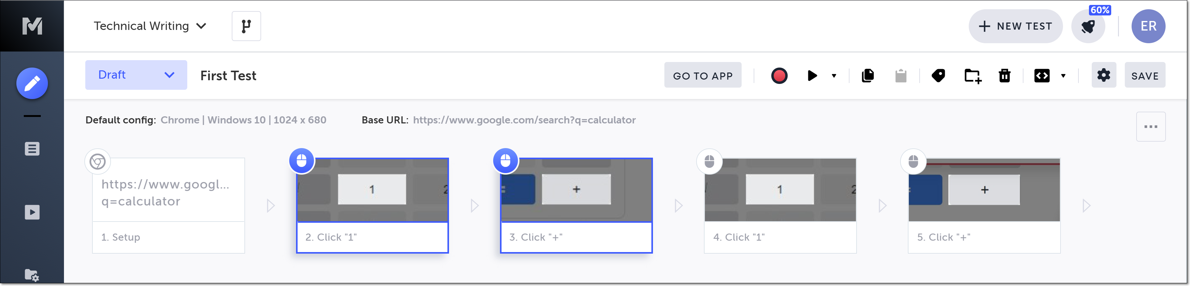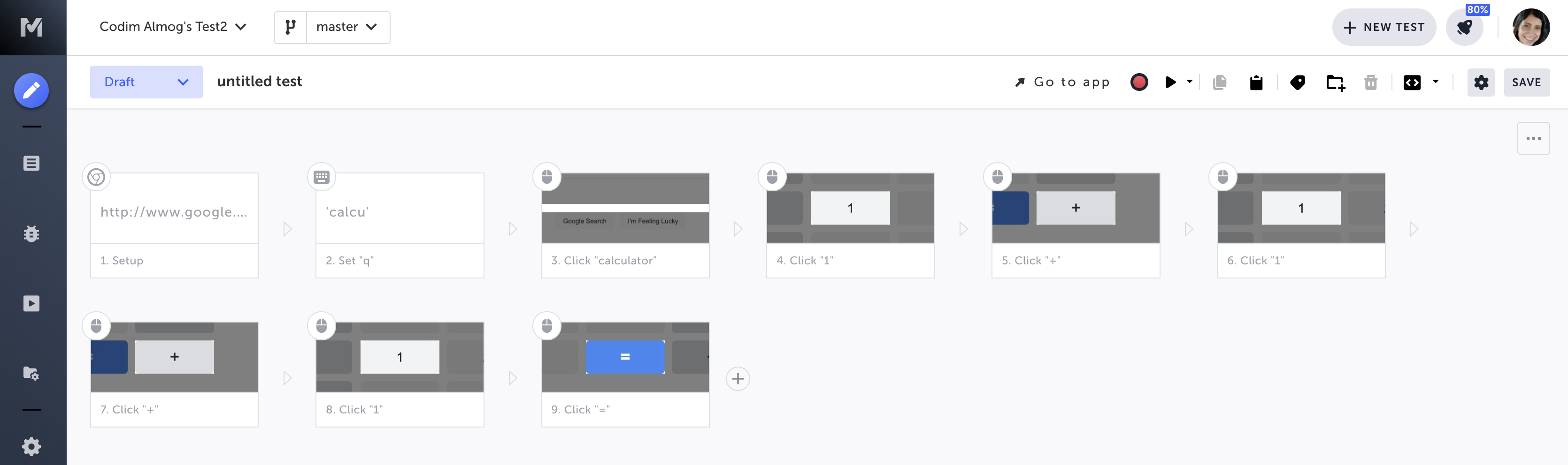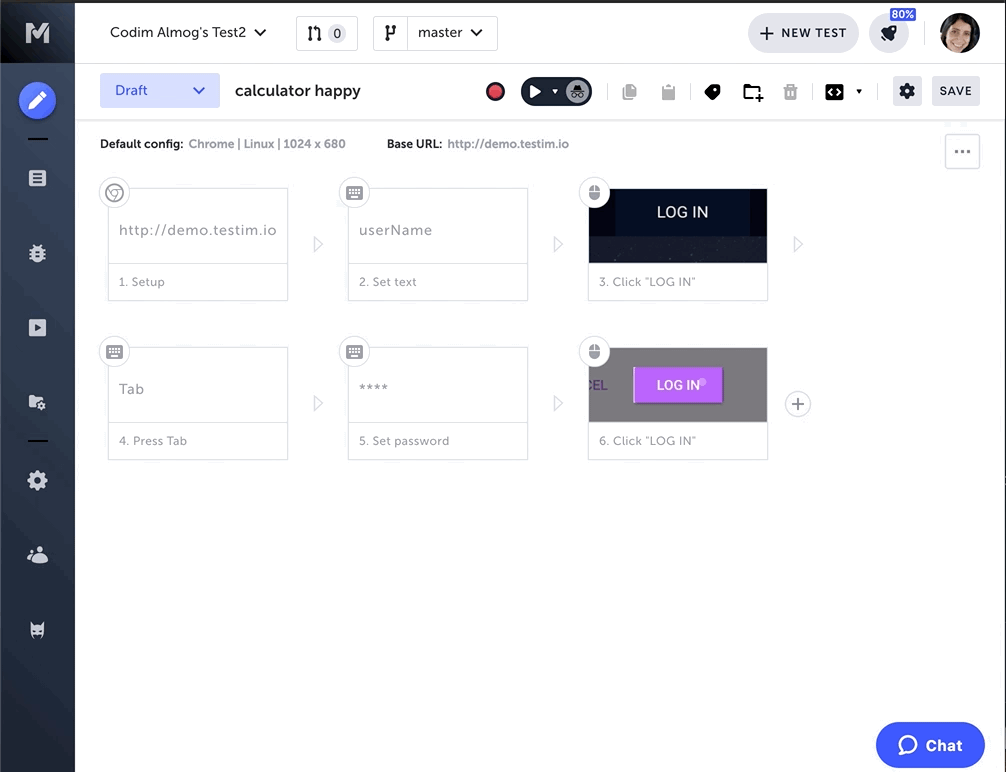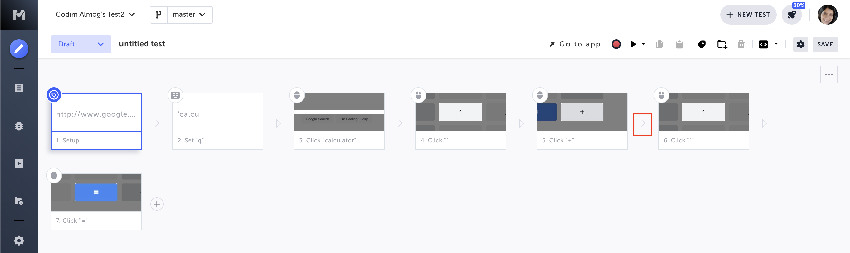You are redirected to the Editor, and the new steps are appended to the end of your test.